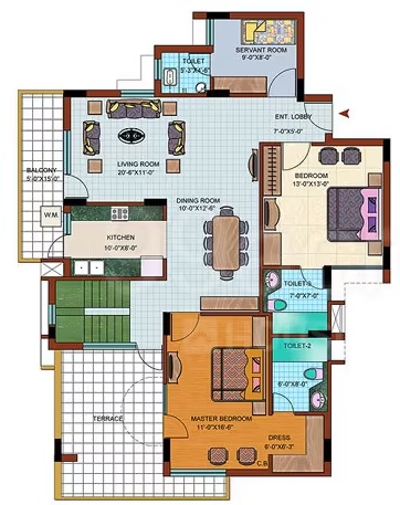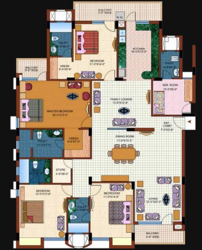 4 BHK + Servent + 5 Washrooms
