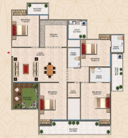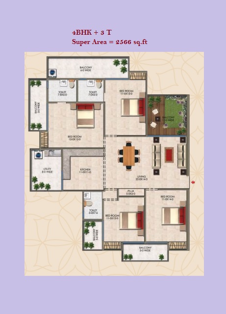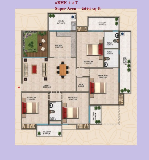 Flat Sizes - ( 1582 - 2644 ) sqft