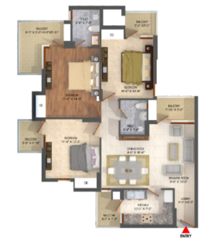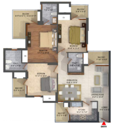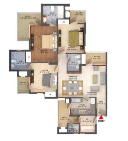 3 BHK + 3 Washrooms