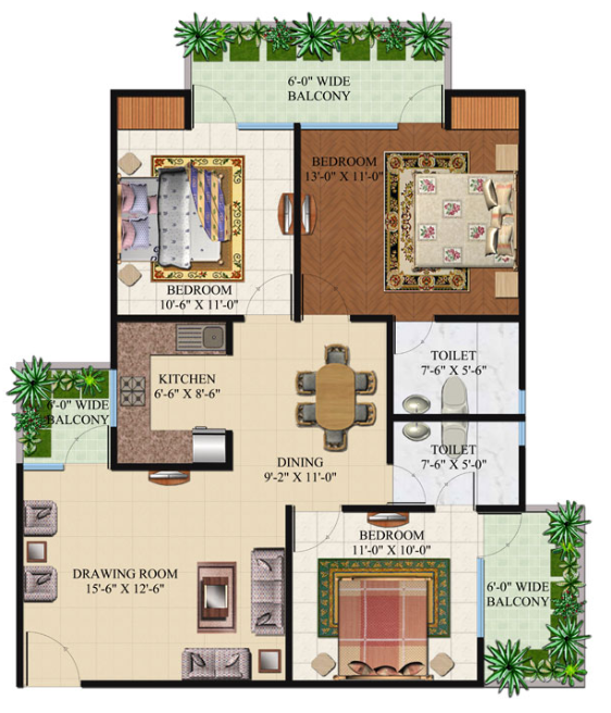 Flat Sizes - ( 895 - 2035 ) sqft