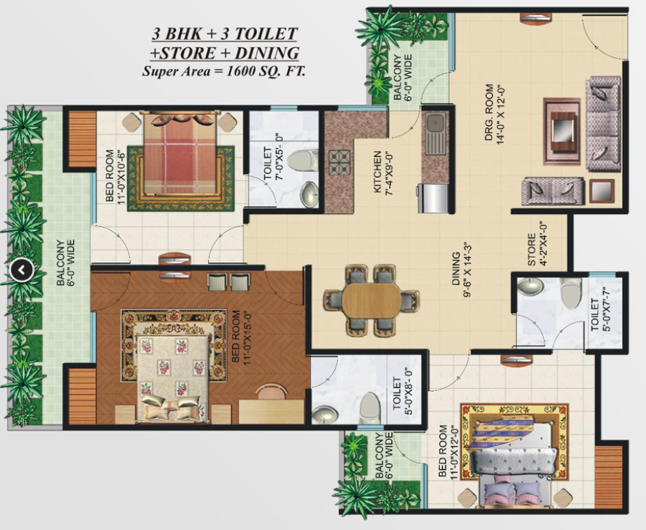 Super Area | 1600 sqft