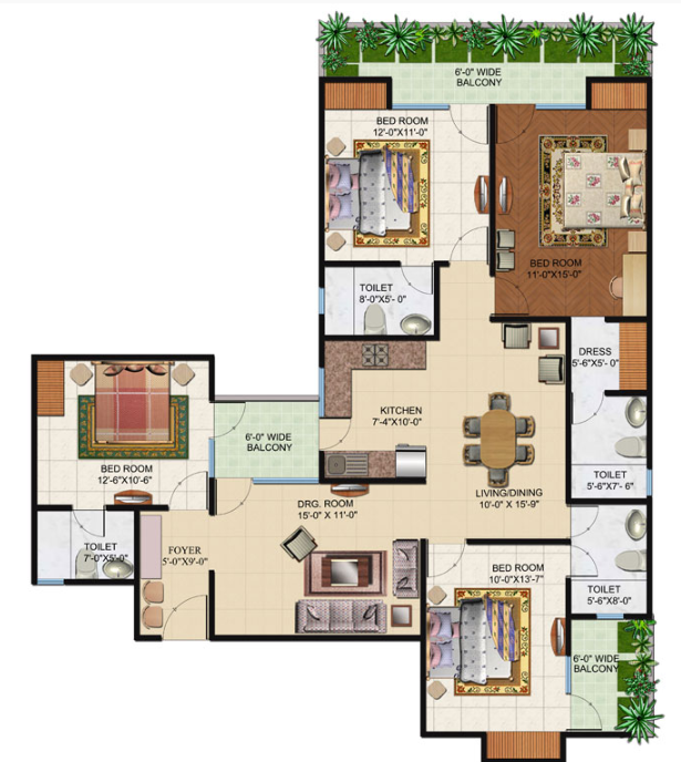 4 BHK + 4 Washrooms
