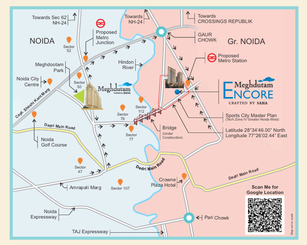 , Location Maps, Master Plan of Saha Meghdutam Encore , TechZone 4, Noida Extension.