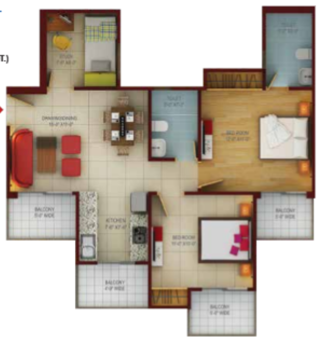 Flat Sizes - ( 980 - 1895 ) sqft