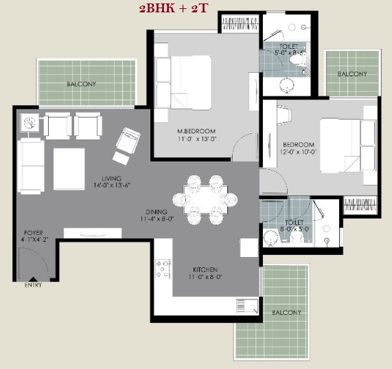 2 BHK + 2 Washrooms