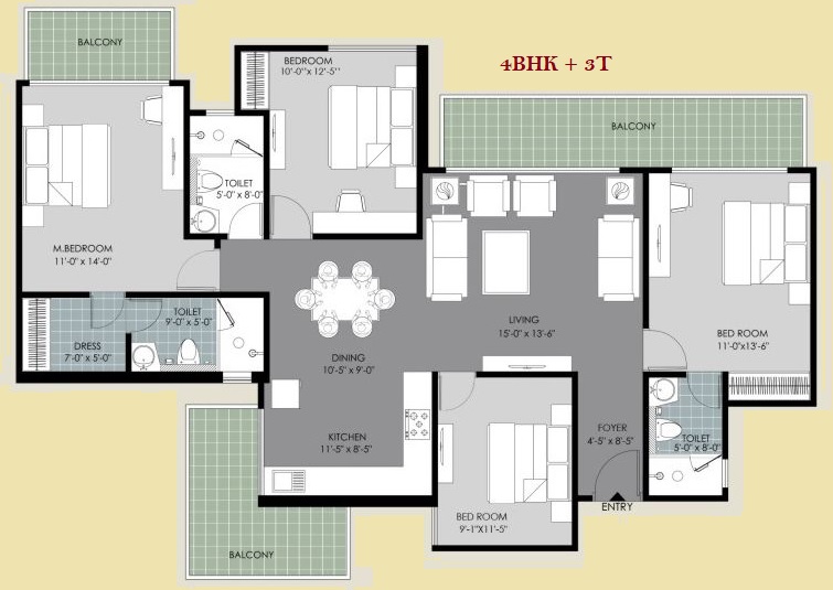 4 BHK + 3 Washrooms