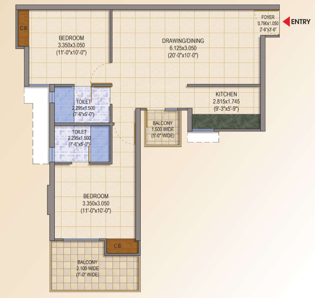 Super Area | 1070 sqft