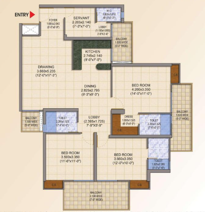 3 BHK + Servernt + 3 Washrooms