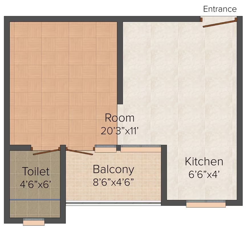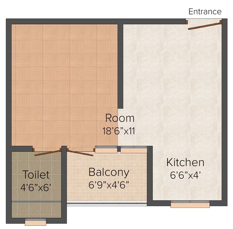 1 BHK + 1 Washrooms