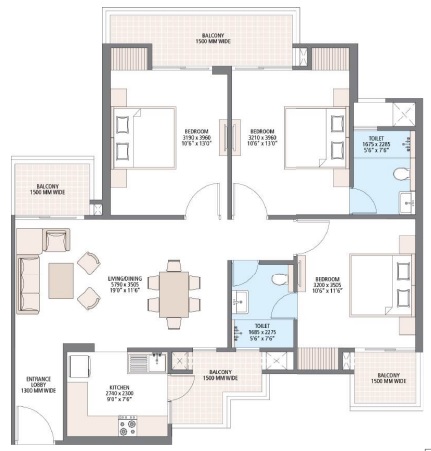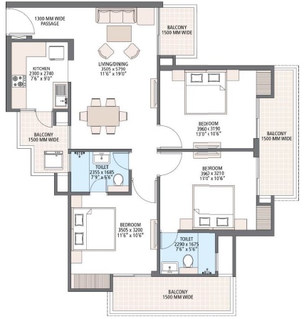 Flat Sizes - ( 1216 - 4347 ) sqft