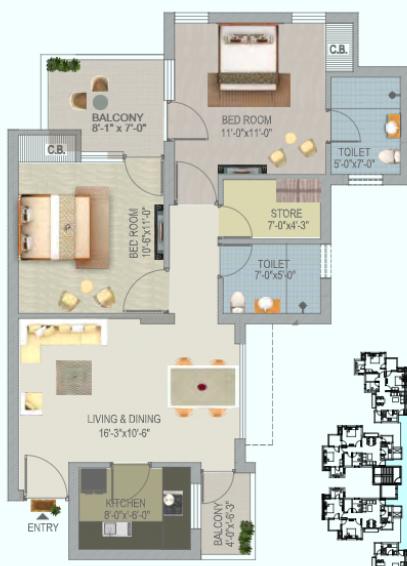 2 BHK + Store + 2 Washrooms