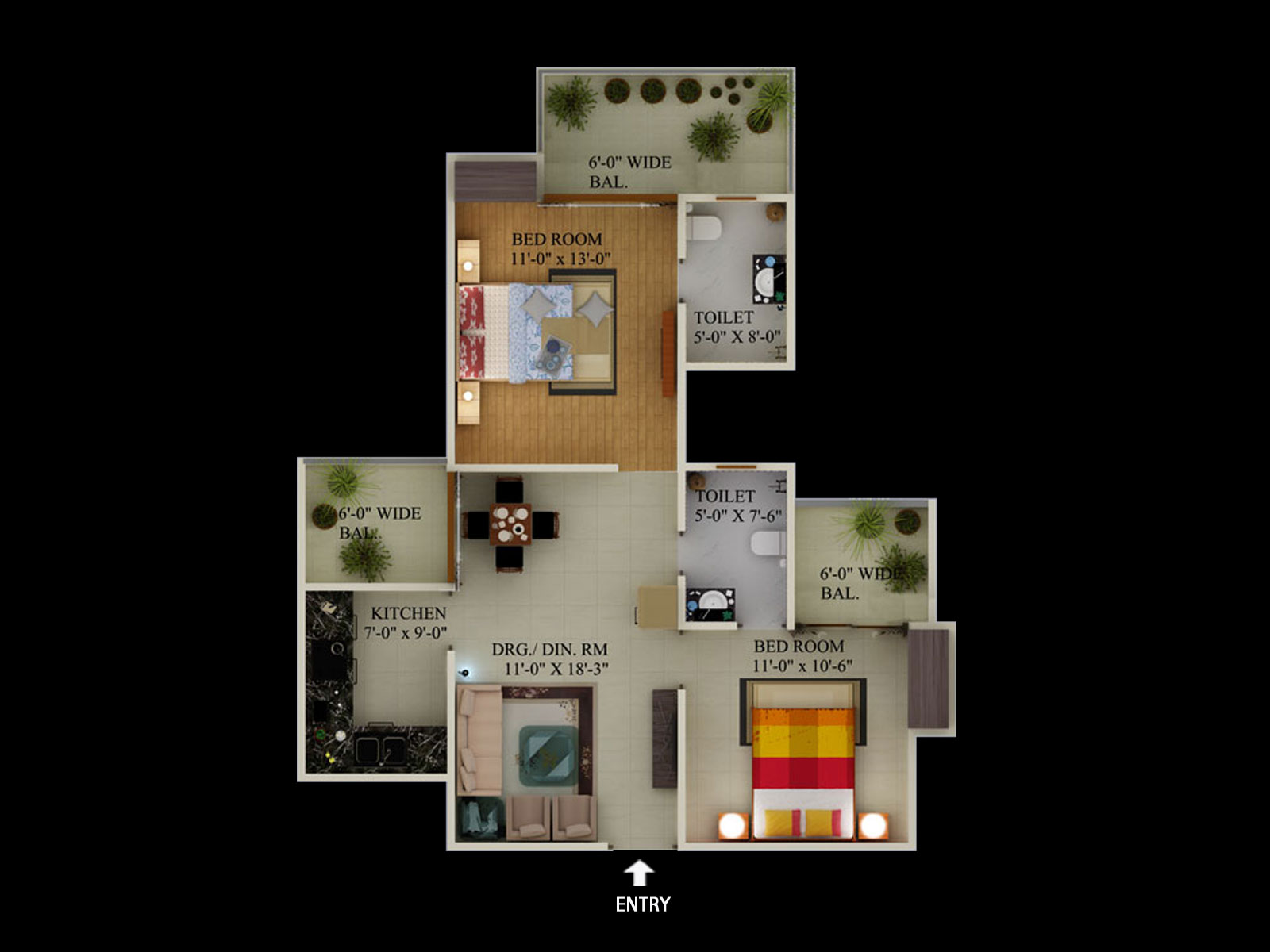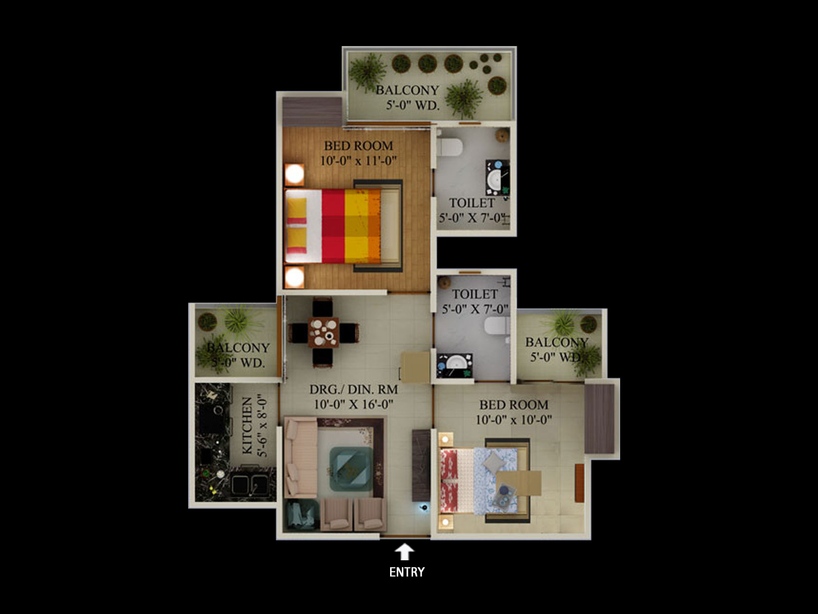 2 BHK + 2 Washrooms