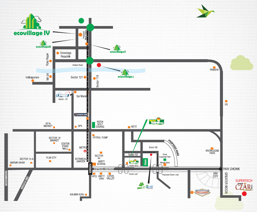 , Location Maps, Master Plan of Supertech Eco Village II , Sector 16B, Noida Extension.