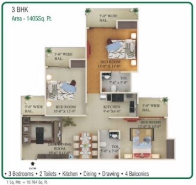 Super Area | 1405 sqft