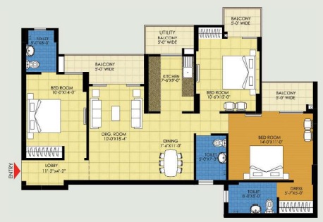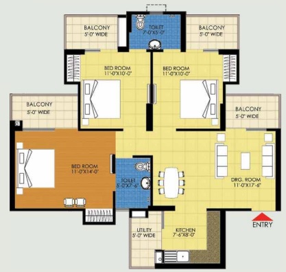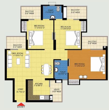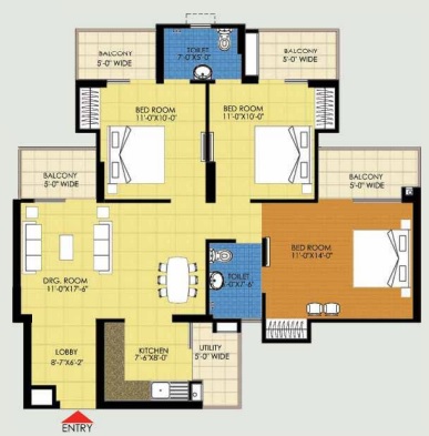 3 BHK + 3 Washrooms