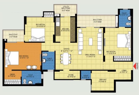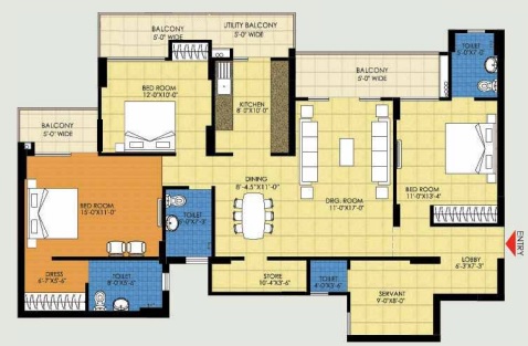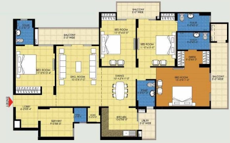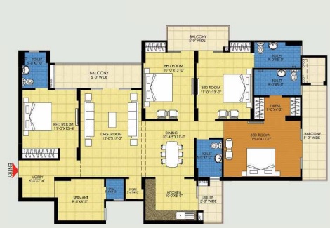 3 BHK + Servernt + 4 Washrooms