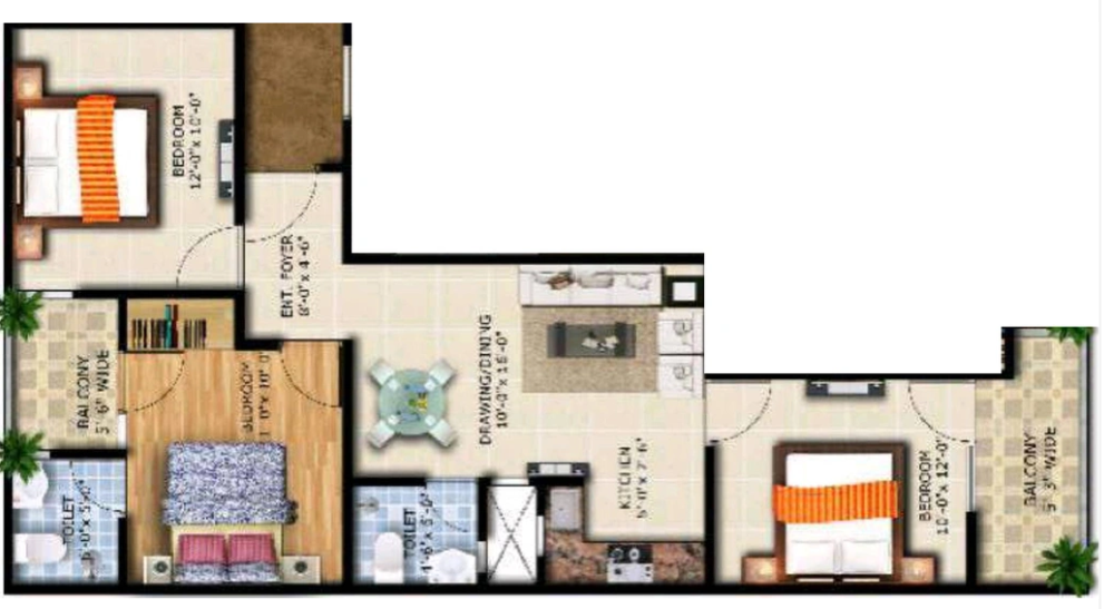 Flat Sizes - ( 950 - 1900 ) sqft